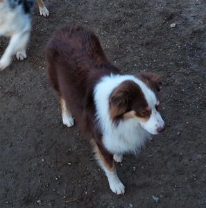 Prince is the sire of many of our litters. He produces beautiful blue merle and black tri pups for us.
